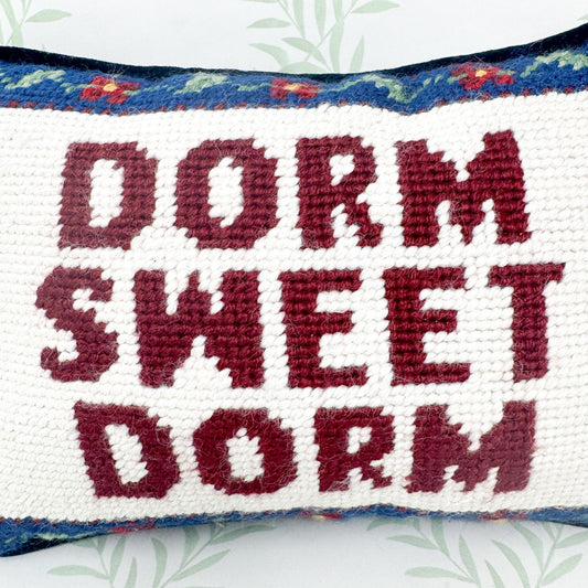 Vintage Needlepoint Pillow, Dorm Sweet Dorm