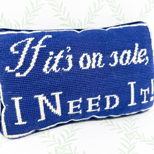 Vintage Needlepoint Pillow, If It's On Sale I Need It