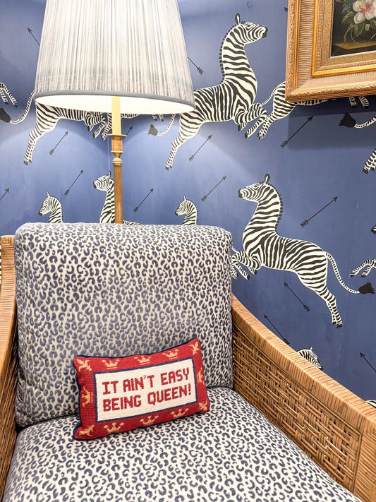 Vintage Needlepoint Pillow, It Ain't Easy Being Queen