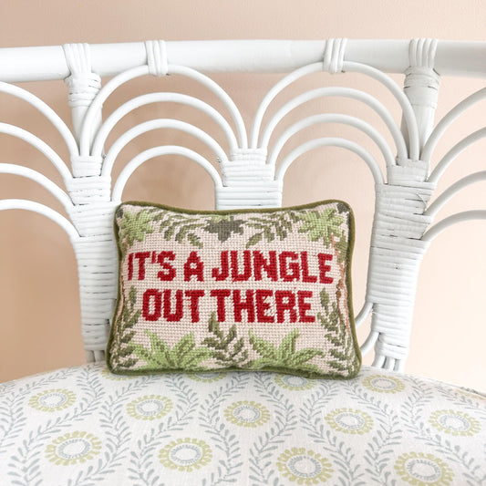 Vintage Needlepoint Pillow, It's A Jungle Out There