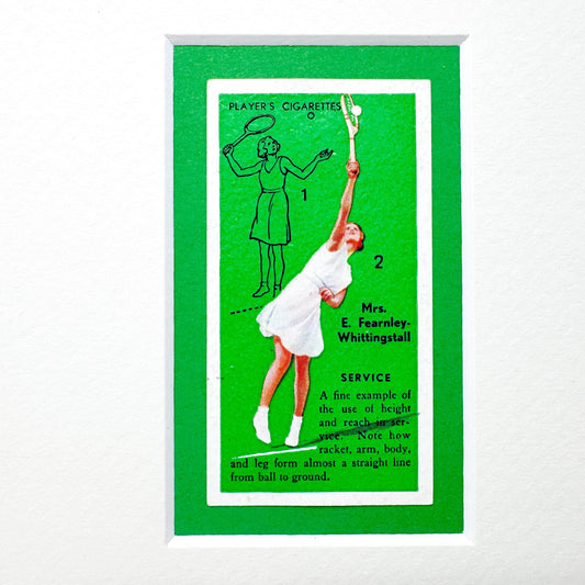 Framed Vintage Tennis Cigarette Card, c. 1936, "Service"