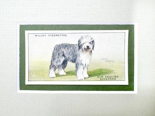 Framed English Sheepdog Antique Cigarette Card c. 1937