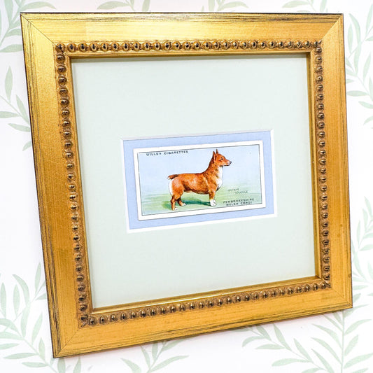 Framed Antique Dog Cigarette Card c. 1937, Welsh Corgi