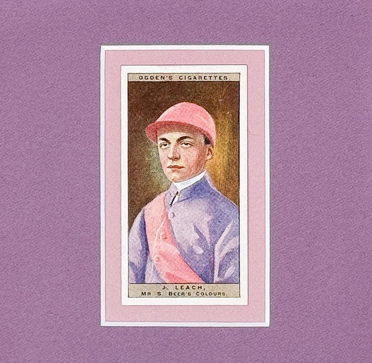 Framed Antique Jockey Horse Cigarette Card c. 1927, J. Leach