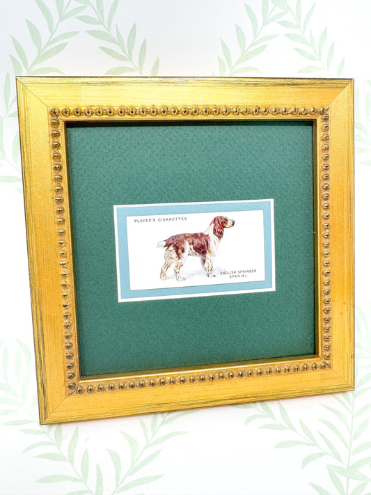 Framed Antique Dog Cigarette Card c. 1931, English Springer Spaniel