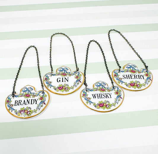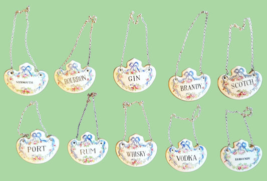 Vintage Coalport Porcelain Liquor Decanter Tag - Hand Painted with Blue Bow