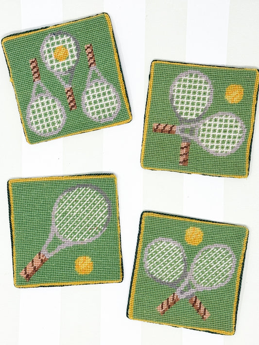 Vintage Tennis Needlepoint Coasters - Set of 4