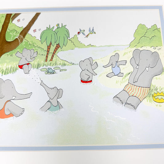 Babar the Elephant Matted Print, 11x14", Swimming Hole