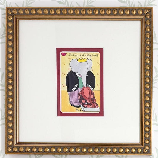 Pair of Vintage Framed Babar and Celeste Cards, Christmas