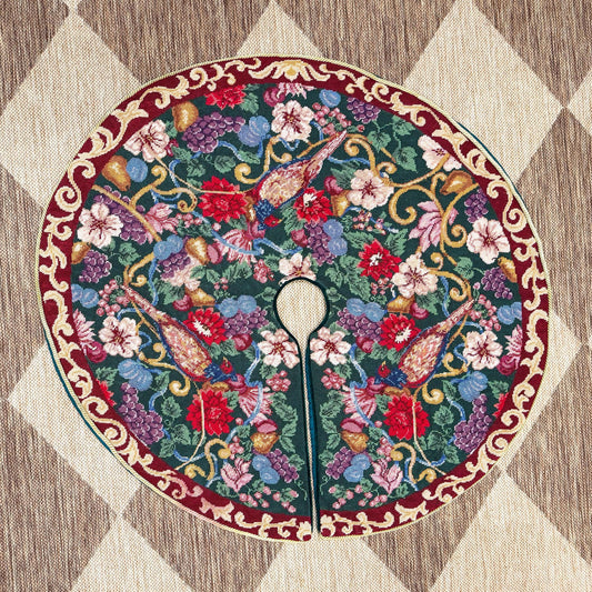 Vintage Needlepoint Christmas Tree Skirt, Pheasants and Florals