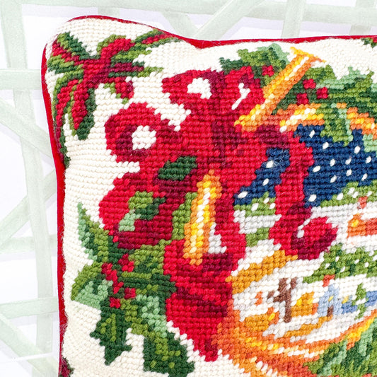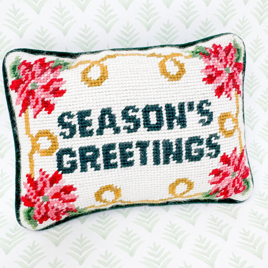 Vintage Christmas Needlepoint Pillow, Season's Greetings