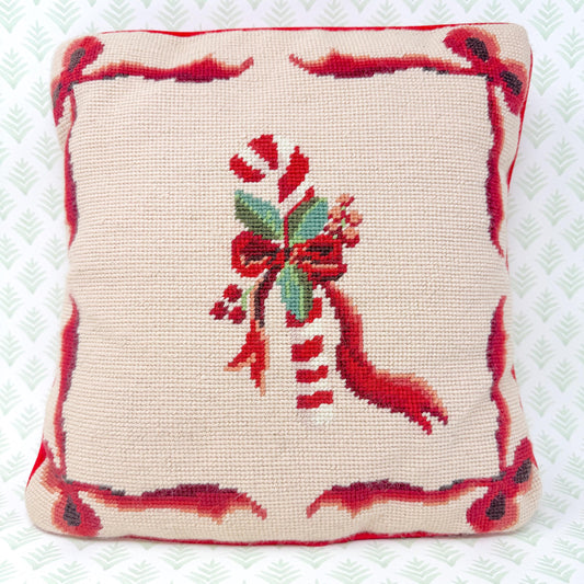 Vintage Christmas Needlepoint Pillow, Candy Cane