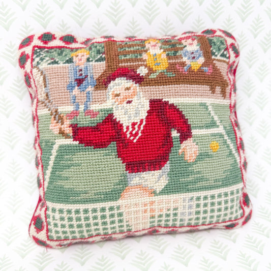 Vintage Needlepoint Christmas Pillow, Tennis Santa