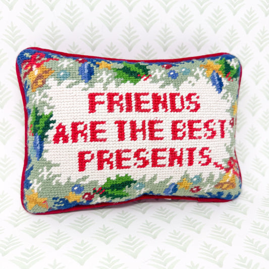 Vintage Christmas Needlepoint Pillow, Friends Are The Best Presents