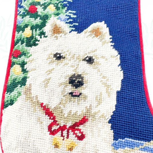 Vintage Needlepoint Christmas Stocking, West Highland Terrier
