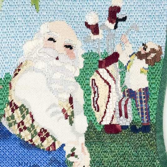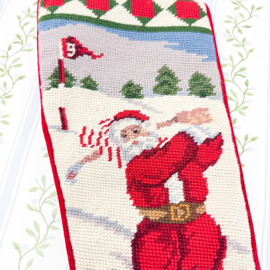 Vintage Needlepoint Christmas Stocking, Santa Golfing