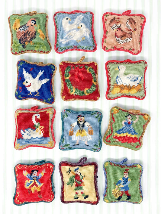 Complete Set 12 Days of Christmas Vintage Needlepoint Ornaments