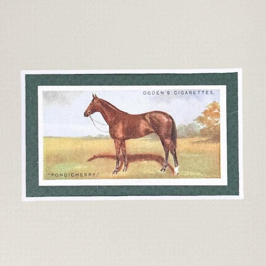 Framed Antique Race Horse Derby Cigarette Card c. 1928, Pondicherry