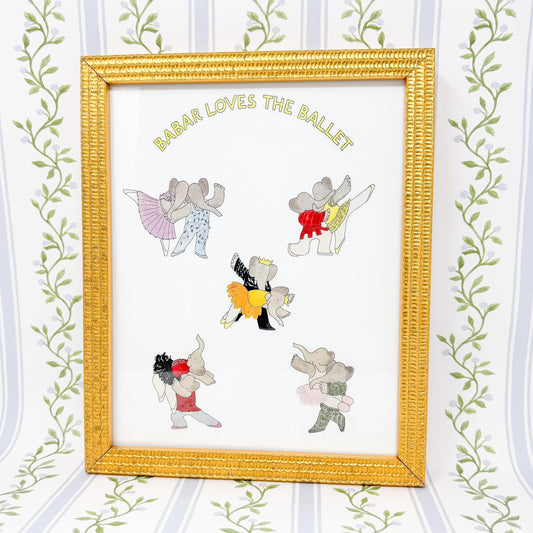 Framed Vintage Babar the Elephant Ballet Print, 8x10"