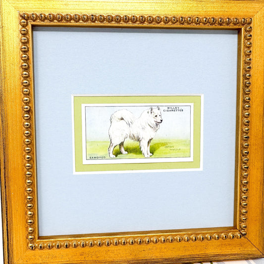 Framed Antique Dog Cigarette Card c. 1937, Samoyed