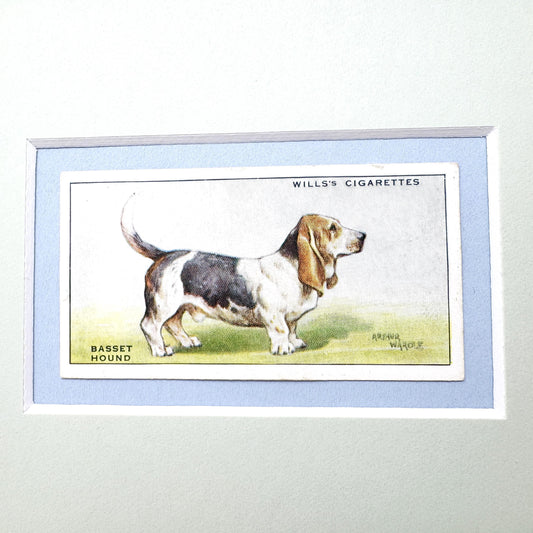 Framed Antique Dog Cigarette Card c. 1937, Basset Hound