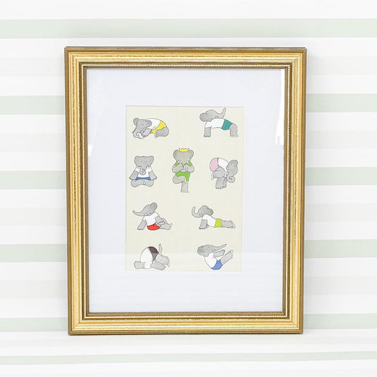 Framed Vintage Babar the Elephant Print, Yoga, 8x10"