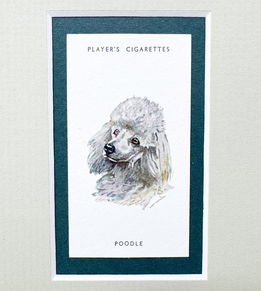Framed Antique Dog Cigarette Card c. 1929, White Poodle