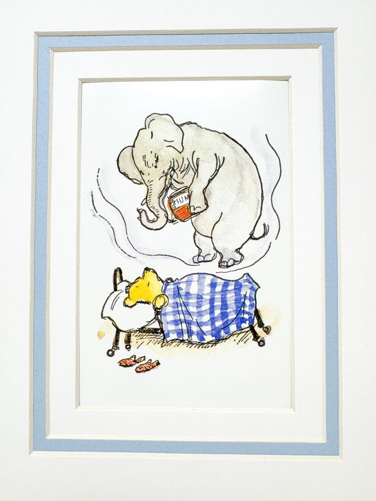 Framed Vintage Winnie the Pooh Postcard, Heffalump Dreams