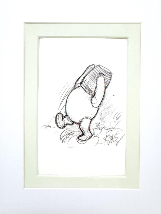 Framed Vintage Winnie the Pooh Postcard, Honey Jar