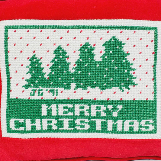 Vintage Handmade Christmas Needlepoint Pillow, Merry Christmas