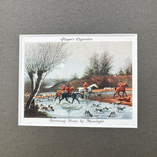 Framed Vintage Fox Hunt Cigarette Card c. 1938, Returning Home By Moonlight