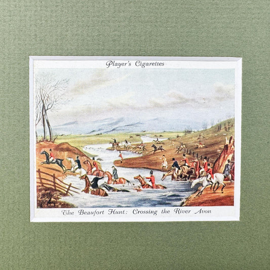 Framed Vintage Fox Hunt Cigarette Card c. 1938, The Beaufort Hunt, Crossing The River Avon
