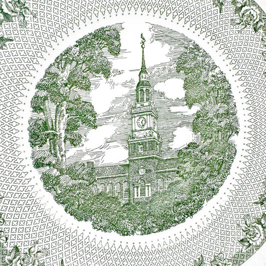 Vintage Dartmouth College Wedgwood Transferware Plate, Green, Baker Library Tower