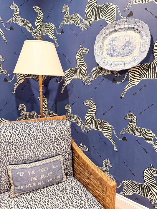 Vintage Hand Stitched Blue and White Needlepoint Pillow, 13"