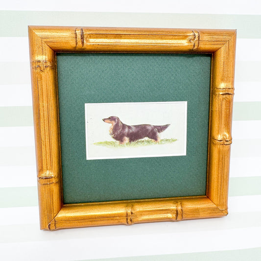 Framed Vintage Dog Cigarette Card c. 1971, Long-Haired Dachshund