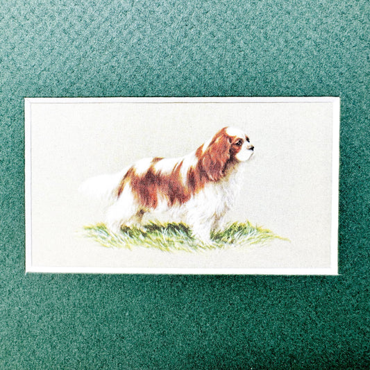 Framed Antique Dog Cigarette Card c. 1925, King Charles Cavalier Spaniel