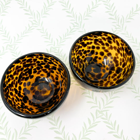 Set of 2 Tortoise Shell Glass Tidbit Bowls