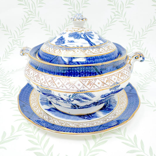 Antique Booth's Real Old Willow China, Round Covered Vegetable Tureen