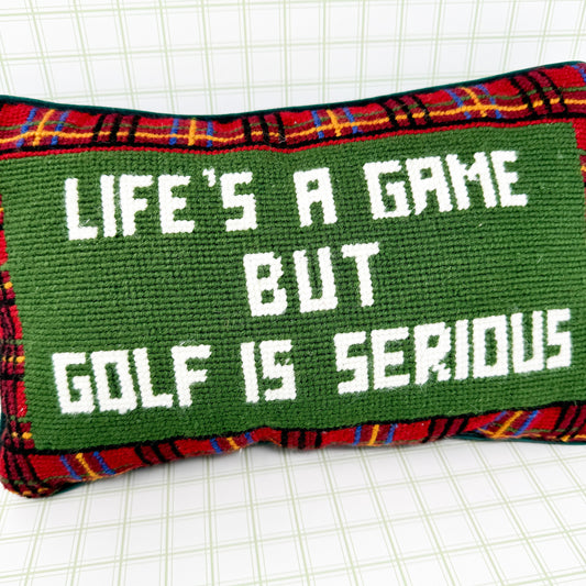 Vintage Needlepoint Pillow, Life's A Game But Golf Is Serious