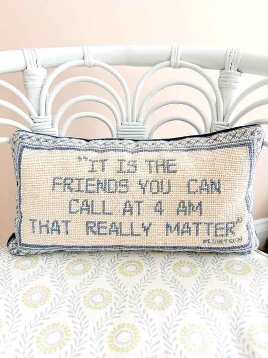 It's The Friends You Can Call at 4 AM That Really Matter Vintage Needlepoint Pillow