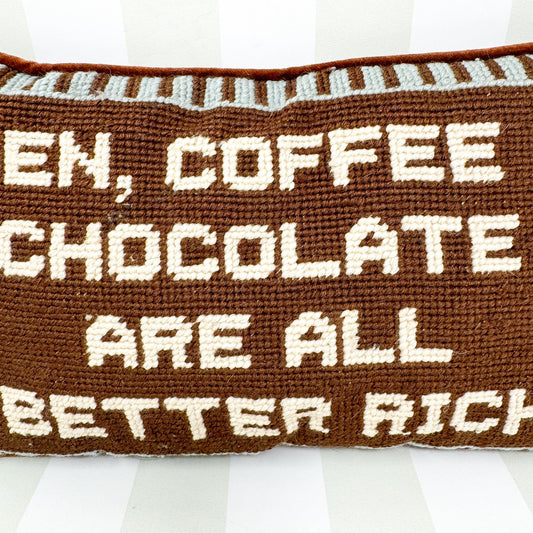 Men, Coffee, and Chocolate Are All Better Rich Funny Vintage Needlepoint Pillow