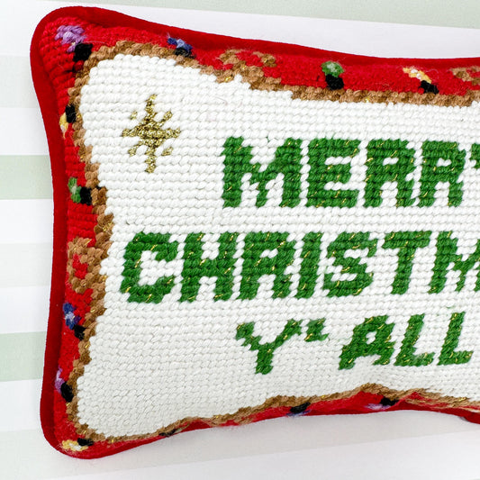 Vintage Christmas Needlepoint Pillow, Merry Christmas Y'all