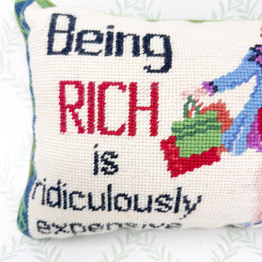 Vintage Needlepoint Pillow, Being Rich Is Ridiculously Expensive