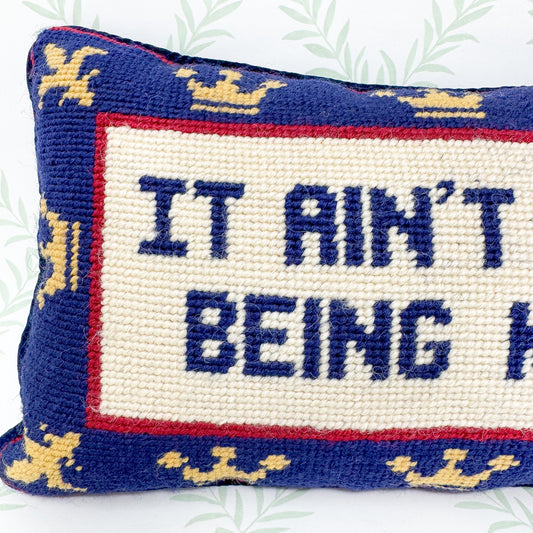 Vintage Needlepoint Pillow, It Ain't Easy Being Queen