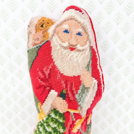 Vintage Christmas Needlepoint Standing Pillow, Santa Claus