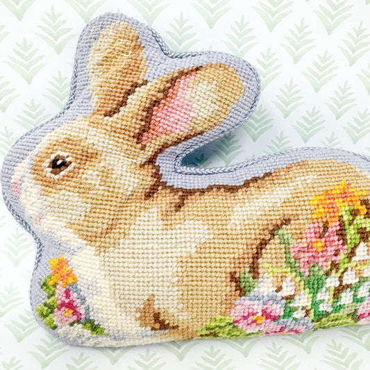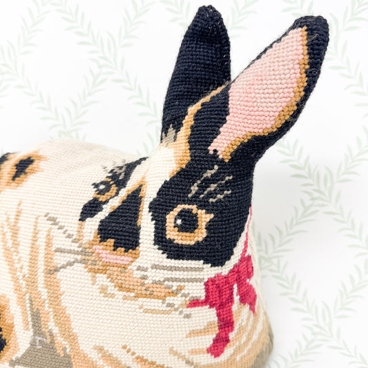 Vintage Needlepoint StandingPillow, Black and White Rabbit