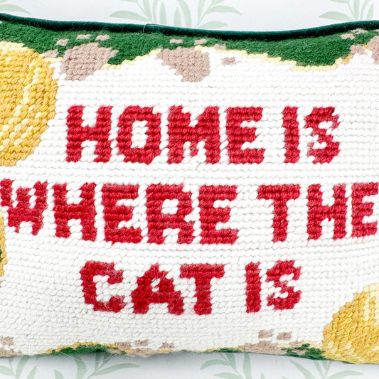 Vintage Needlepoint Pillow, Home Is Where The Cat Is