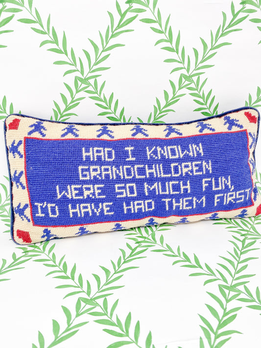 Had I Know How Much Fun Grandchildren Were I Would Have Had Them First - Vintage Needlepoint Pillow