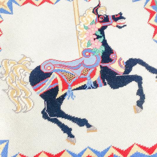 Handmade Vintage Needlepoint Pillow Cover *AS IS*, Carousel Horse