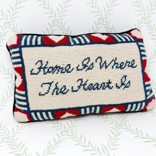 Vintage Needlepoint Pillow, Home Is Where The Heart Is